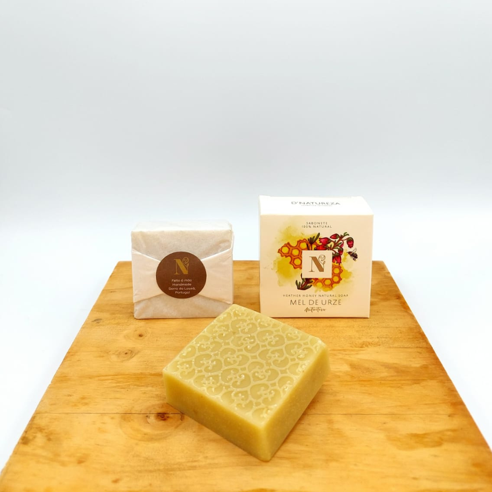 Sabonete de mel de urze perfumado com óleos essenciais. Com uma fórmula meticulosamente desenvolvida para produzir um sabonete suave e nutritivo, que oferece uma espuma de longa duração e deixa a pele limpa, macia e saudável. Produzido com manteigas vegetais nobres e óleos essenciais de grau terapêutico proporciona uma sensação verdadeiramente suavizante, pois não resseca a pele.